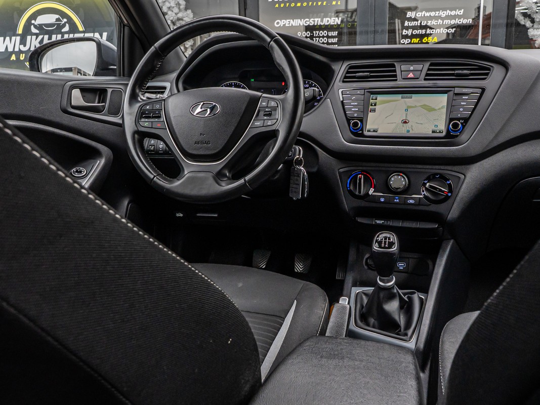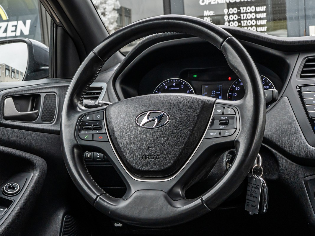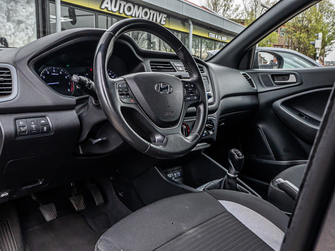 Zodra u naar de 'R' schakelt, gaat de achteruitrijcamera in werking en heeft u een perfect zicht op alles wat zich achter de auto afspeelt. Het navigatiesysteem en het audiosysteem (met DAB-ontvangst!) bedient u met knoppen op het stuur. Omdat u nu eenmaal niet overal ogen heeft, is deze Hyundai I20 voorzien van een achteropkomend verkeer waarschuwing die registreert wanneer de afstand tot uw achterligger te krap is. Natuurlijk is een complete auto als deze ook voorzien van sensoren die de omgeving in de gaten houden. Deze Hyundai heeft niet alleen een automatisch inschakelbare verlichting aan boord, maar ook een regensensor. De cruise control houdt de snelheid constant. Dat is relaxt reizen! Met airconditioning, automatisch dimmende binnenspiegel, lederen stuur, centrale deurvergrendeling met afstandsbediening, boordcomputer en lederen versnellingspook is deze auto helemaal compleet.