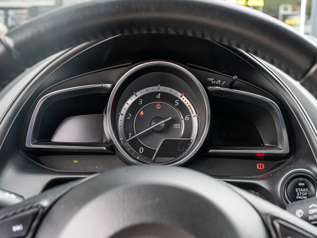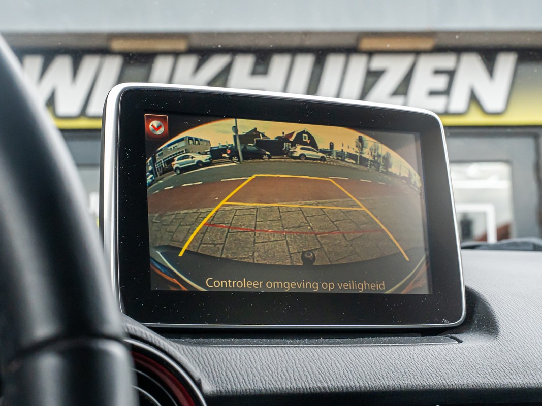 Parkeer en kijk niet om! De achteruitrijcamera doet dat voor u. Een belangrijke veiligheidsvoorziening is de bediening van het audiosysteem en het navigatiesysteem, via knoppen op het stuur en middels spraakbediening. DAB-ontvangst geeft daarbij een kraakheldere ontvangst. Electronic climate control regelt volautomatisch de temperatuur. U kiest de gewenste temperatuur en het systeem doet de rest. Het hoort bij een intelligente auto als deze dat hij zelf in staat is om zijn omgeving in de gaten te houden. Dat doet deze Mazda met een automatisch inschakelbare verlichting en een regensensor. Met cruise control rijdt u rustiger en meer ontspannen, en bovendien zuiniger. U bent in deze Mazda ook voorzien van keyless entry, lederen stuur, centrale deurvergrendeling met afstandsbediening en boordcomputer.