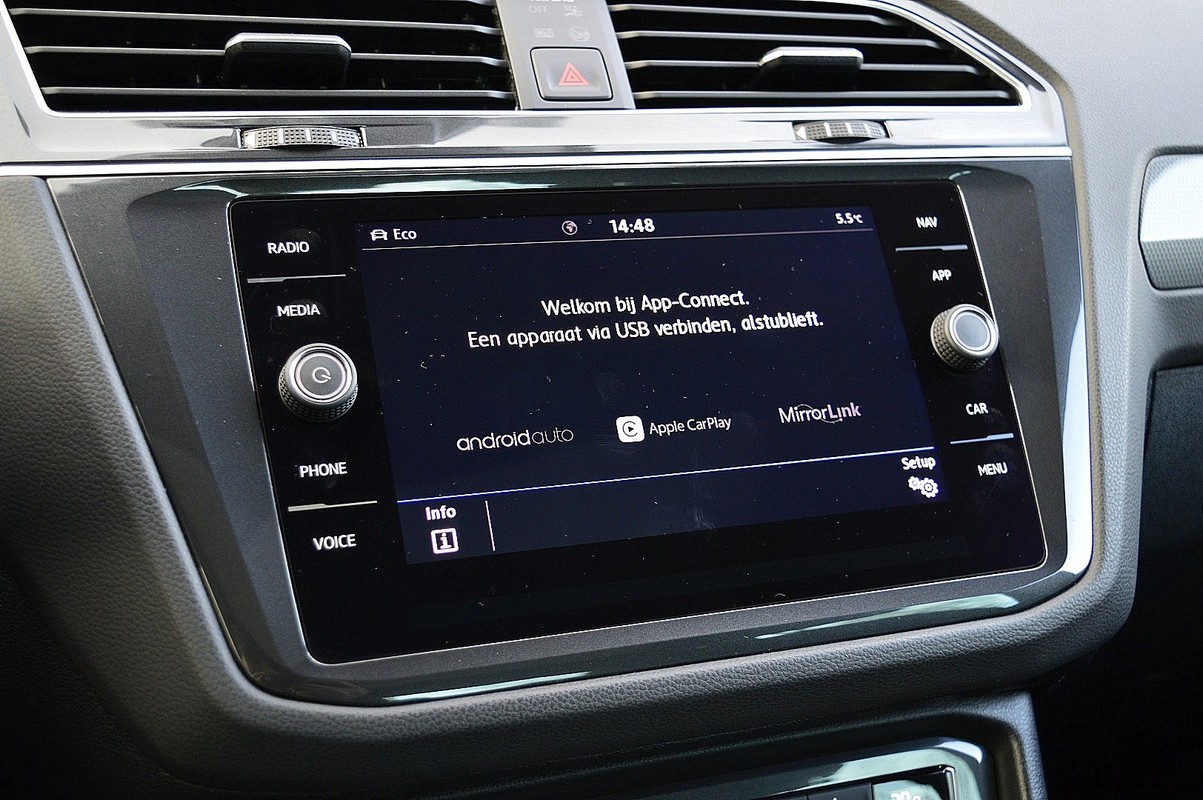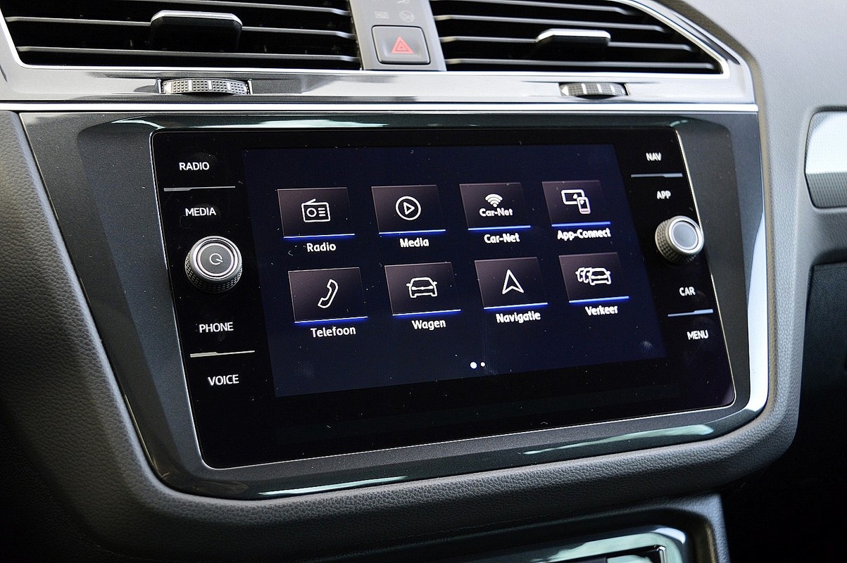 Zoals u mag verwachten van deze Volkswagen Tiguan is hij uitgerust met een reeks aan actieve veiligheidssystemen. Dat de auto steeds meer taken van de bestuurder overneemt, merkt u bijvoorbeeld aan het systeem voor verkeersbord-detectie in deze auto. Voorzien van het Lane-keeping systeem. Ofwel: blijf automatisch in je baan. Het forward collision warning-systeem is constant alert en detecteert via sensor de afstand tot voorliggers. Wordt die te klein, dan volgt een automatische waarschuwing. De veiligheid van deze auto wordt verder verhoogd door head-up display, hill hold functie, brake assist, vermoeidheidsherkenning en bandenspanningcontrolesysteem.