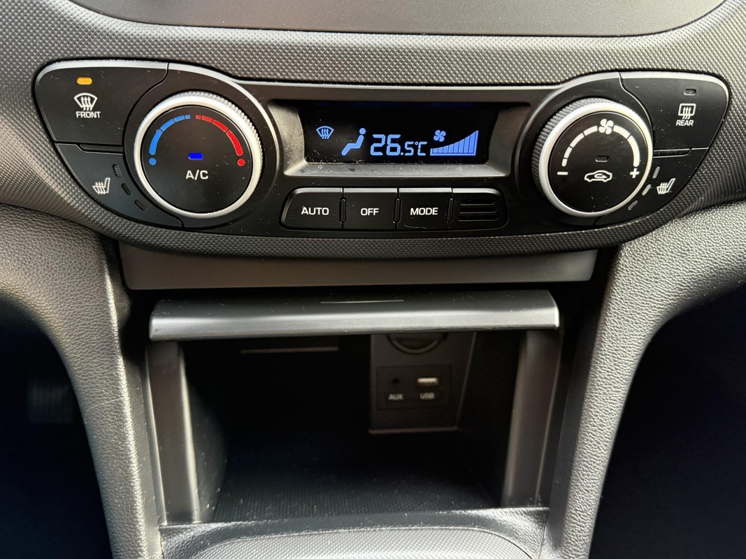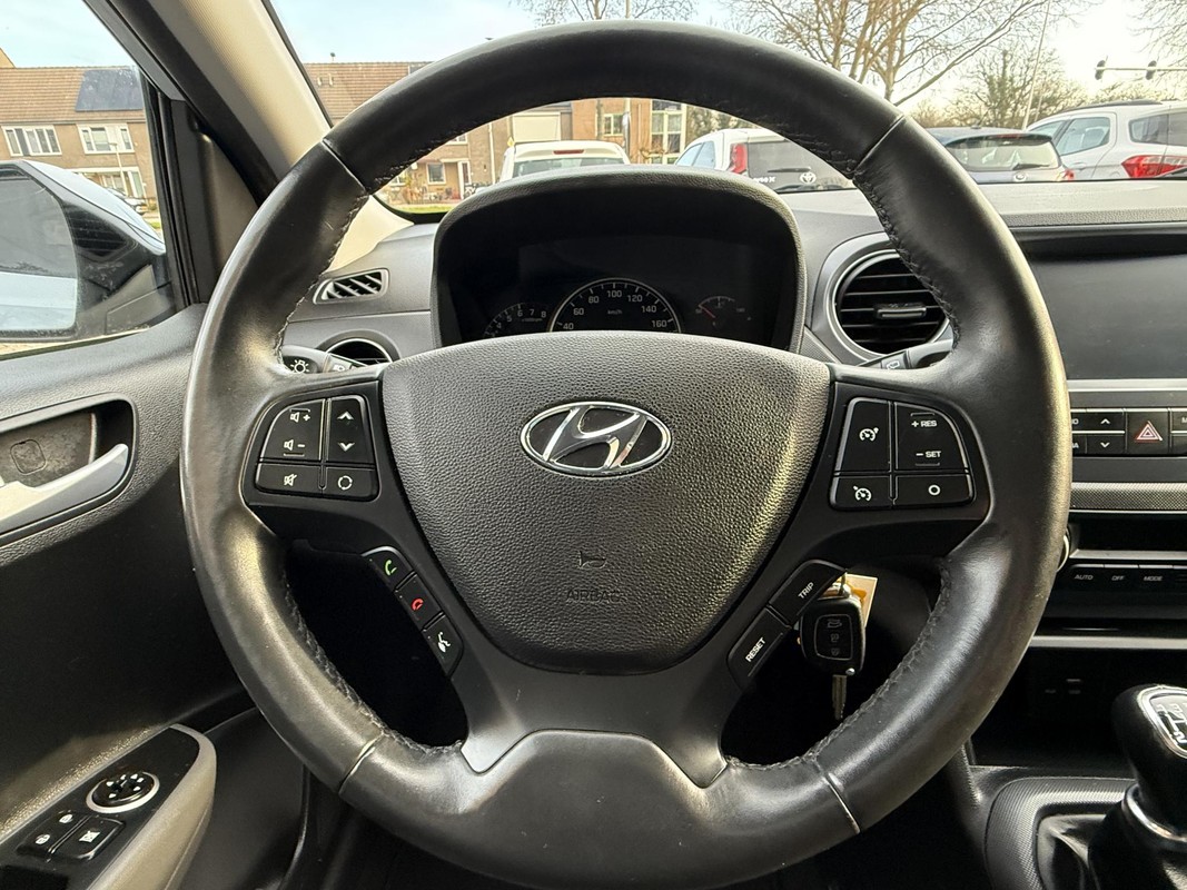 U kunt het audiosysteem met DAB-ontvangst en het full map navigatiesysteem bedienen met de knoppen op het stuur. De achteropkomend verkeer waarschuwing bewaakt de afstand tot achterliggers en geeft een signaal als er te weinig ruimte is. U verwacht natuurlijk automatische airconditioning in deze auto, en die is er dan ook. Ervaar het comfort van inparkeren met parkeersensoren. Deze auto laat zich moeiteloos in elk parkeervak manoeuvreren. Relaxt rijden is meegeleverd in de vorm van cruise control. U bent in deze Hyundai ook voorzien van centrale deurvergrendeling met afstandsbediening, boordcomputer en lederen versnellingspook.