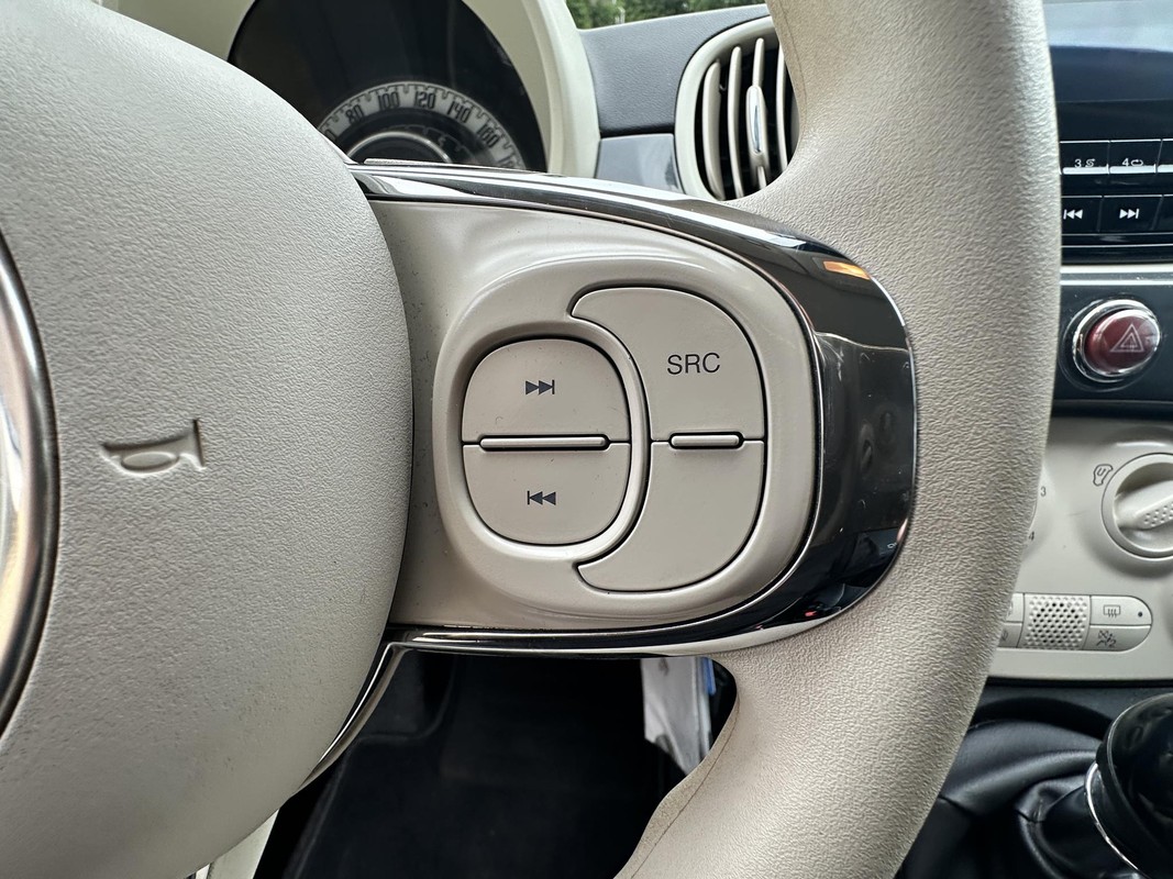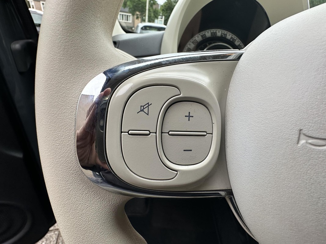 Aan boord van deze Fiat 500 C is een achteropkomend verkeer waarschuwing voor extra veiligheid. Andere zender, andere muziek, meer volume? Met de audiobediening op het stuur is het makkelijk en veilig geregeld. In de zomer zorgt de airconditioning voor verkoeling. In het voorjaar en najaar voorkomt het systeem beslagen ramen. Met centrale deurvergrendeling met afstandsbediening en verstelbaar stuur is deze auto helemaal compleet.