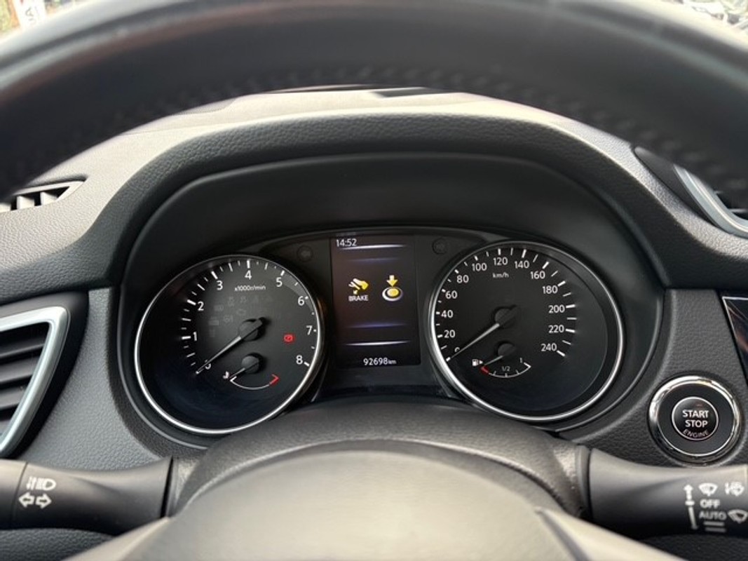 Zoals u mag verwachten van deze Nissan Qashqai is hij uitgerust met een reeks aan actieve veiligheidssystemen. U rijdt ook veiliger omdat deze auto voor u de verkeersborden langs de weg kan lezen. De belangrijkste borden worden op uw instrumentarium geprojecteerd, zodat u ze niet kunt missen. Indien u onbedoeld de rijstrook lijkt te verlaten, reageert het Lane-keeping systeem meteen en corrigeert. Om te voorkomen dat u tijdens lange ritten achter het stuur in slaap valt, is deze auto voorzien van vermoeidheidsherkenning. Verder is deze auto uitgerust met dodehoekdetectie, hill hold functie, brake assist en bandenspanningcontrolesysteem.
