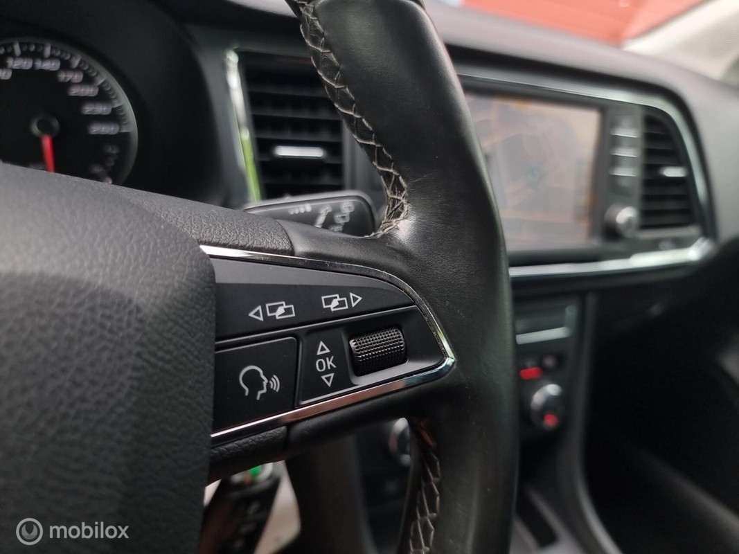 Koppel u smartphone voor draadloos gebruikersgemak. U bent verzekerd van een stressvrije reis naar uw bestemming met behulp van het navigatiesysteem, plus u kunt genieten van een prachtige geluidservaring via het audio-installatiesysteem met bluetooth functionaliteit en usb-aansluiting. Automatische airconditioning regelt volautomatisch de temperatuur. U kiest de gewenste temperatuur en het systeem doet de rest. De aanwezige parkeersensoren zijn de ultieme hulp om te laten weten hoeveel ruimte er nog is om te manoeuvreren. Natuurlijk is een complete auto als deze ook voorzien van sensoren die de omgeving in de gaten houden. Deze Seat heeft niet alleen een automatisch inschakelbare verlichting aan boord, maar ook een regensensor. De uitrusting van deze Seat is met cruise control, buitentemperatuurmeter, automatisch dimmende binnenspiegel, lederen stuur en isofix-aansluiting behoorlijk compleet.