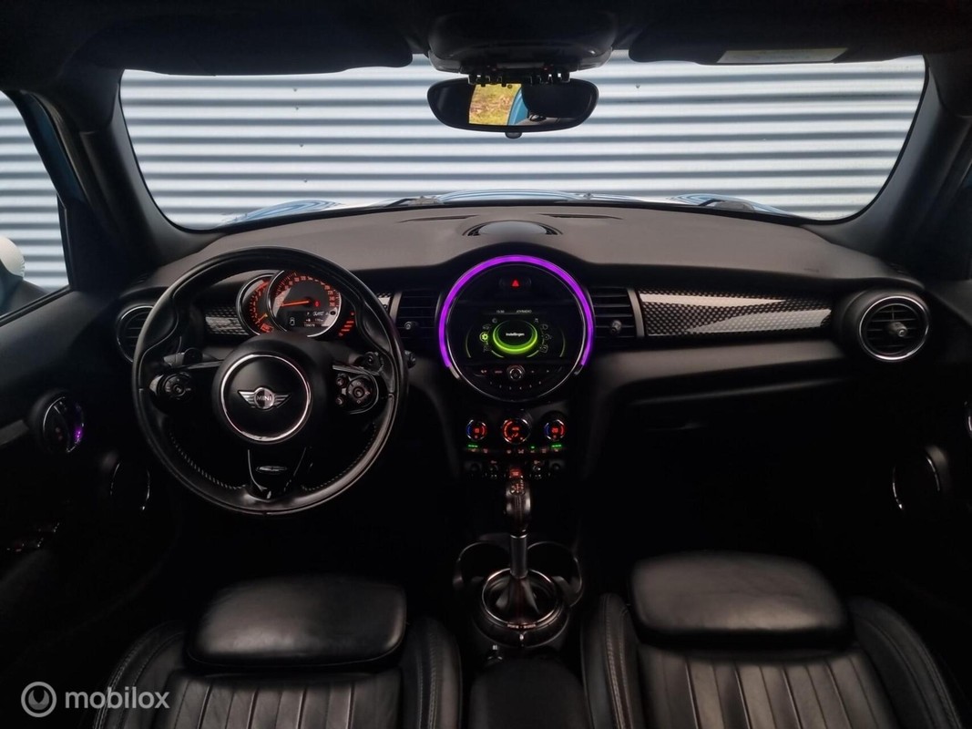 Mini Mini 2.0 Cooper S Chili Serious Business Automaat 192pk. 5-deurs, Zeldzame electric-blue metallic kleur, Full LED koplampen, Vol leder sportstoelen met stoelverwarming, ECC klimaatcontrol, Cruise-control, 17inch LM velgen, Parkeersensoren, Navigatie, Ambiance interieur sfeerverlichting, Wit dak, Chrome instaplijsten, Keyless start, Isofix, Dimmende binnenspiegel, Regensensor, Lichtsensor, Zwarte hemelbekleding, Schakelflippers aan stuurwiel, Instelbaar onderstel / motorvermogen / uitlaatsound, Elektr.ramen en spiegels, Bluetooth telefoon, Bluetooth streamen, enz.enz. Deze Mini staat al rijklaar. Is net voorzien van onderhoudsbeurt, en hij word vooraf aflevering voorzien van nieuwe APK.
