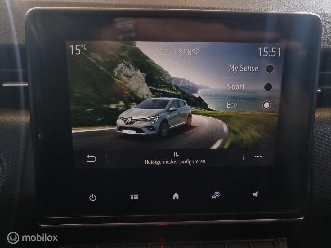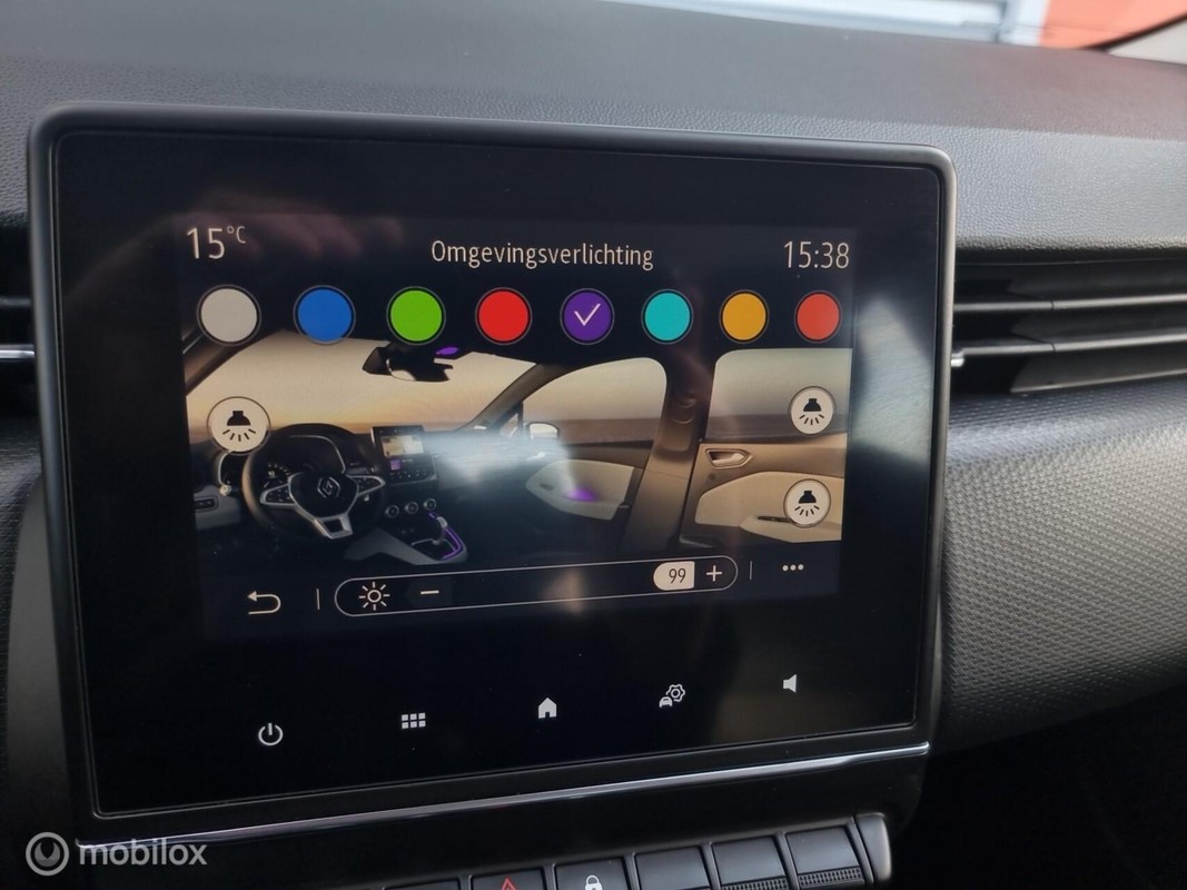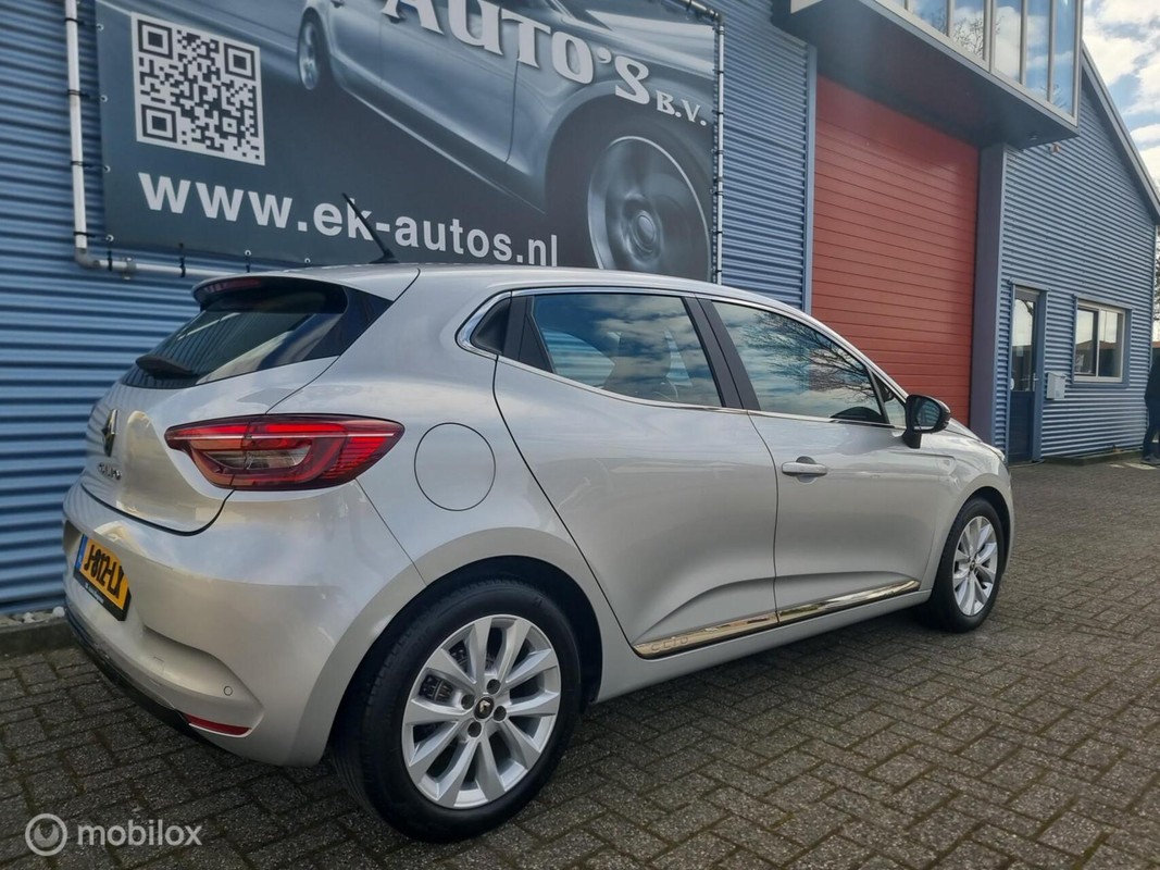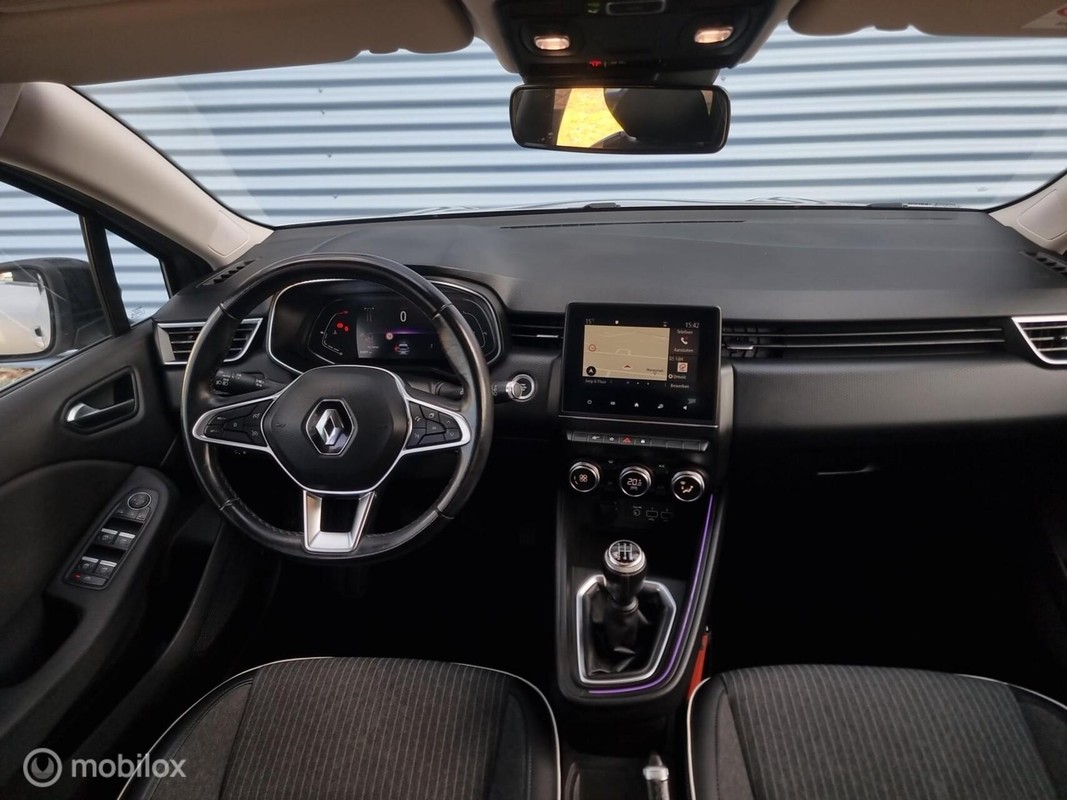 Renault Clio 1.0Turbo 101pk Bi-Fuel LPG-G3 Intens. LPG onderbouw, Compleet uitgevoerd met o.a: Half leder sportstoelen, Full LED koplampen en achterlichten, Meerkleurige interieur sfeerverlichting, Keyless go + start, DAB+ radio, Achteruitrij camera, Parkeersensoren voor en achter, Cruise-control, Navigatie, Virtual display, Apple/ Android, USB, Bluetooth streamen, Bluetooth telefoon, Draadloze telefoonlader, LM velgen (nieuwe banden), Hoogglans zwarte exterieur accenten, Brake assist, Lane assist, Verkeersbordherkenning, Multi-Sense instellingen, Elektrische inklapbare buitenspiegels, Isofix, Chrome exterieur accenten, Stuurbediening, enz.enz.