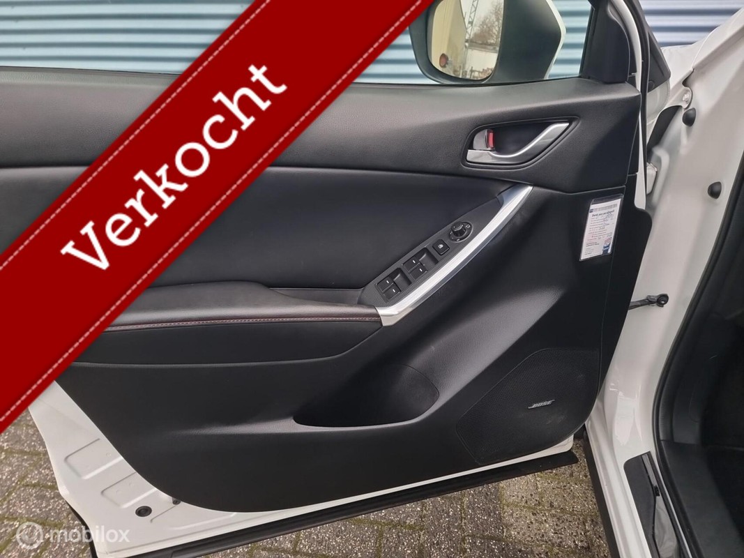 Wat een gemak, die achteruitrijcamera. Alles in beeld zonder capriolen. Als u regelmatig met een aanhanger of een fietsendrager op pad bent, is de afneembare trekhaak een praktische extra. Muziek luisteren onderweg was nog nooit zo'n genoegen! Het high performance Bose audiosysteem levert een fijne geluidservaring. Het comfort wordt verhoogd door de aanwezige electronic climate control. Natuurlijk is een complete auto als deze ook voorzien van sensoren die de omgeving in de gaten houden. Deze Mazda heeft niet alleen een automatisch inschakelbare verlichting aan boord, maar ook een regensensor. Ook full map navigatiesysteem, cruise control, keyless entry, automatisch dimmende binnenspiegel, lederen stuur en isofix-aansluiting horen tot de voorzieningen op deze auto.