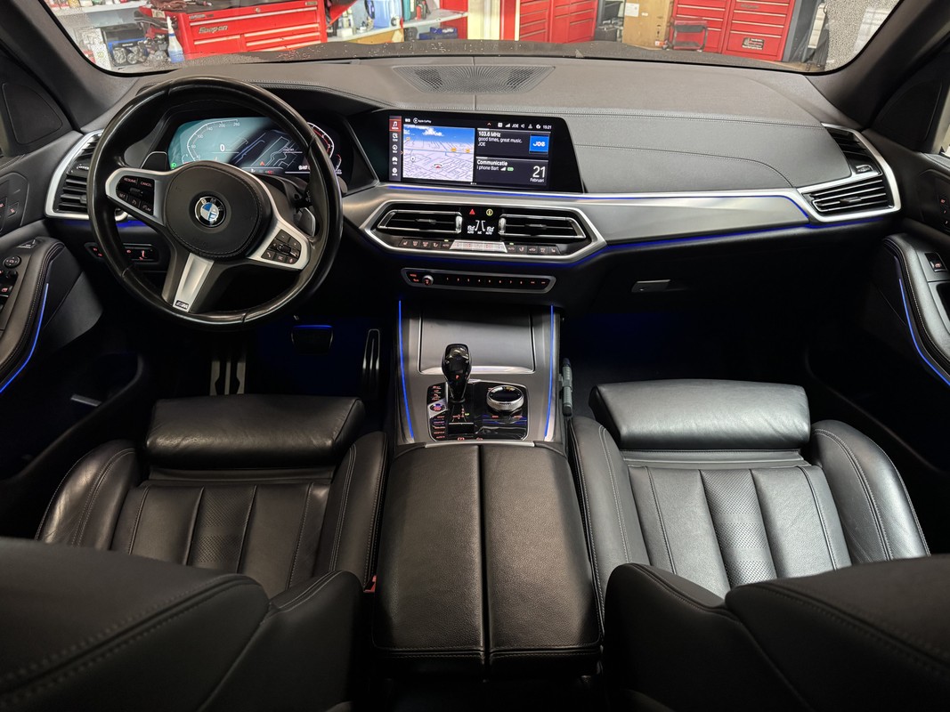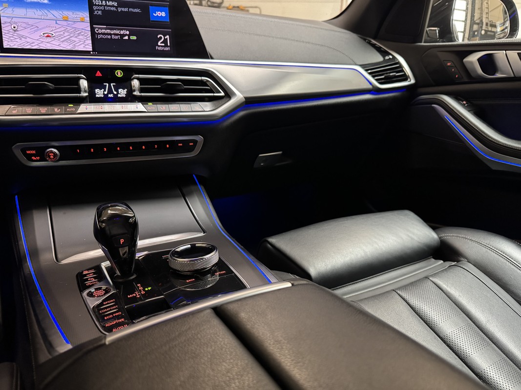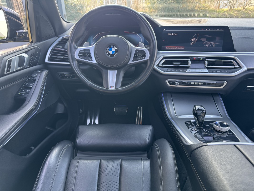 Veelzijdigheid en doordacht design staan aan de basis van deze ruime BMW X5 M-Sport. Met zijn benzinemotor en automatische transmissie is dit een prima auto voor nog vele kilometers. Het lederen interieur is een stijlvolle extra van deze BMW X5. U past de stoelen moeiteloos aan, ze zijn elektrisch in te stellen en hebben bovendien een geheugen. Fun en functie wordt samengebracht in het elektrisch bedienbare glazen panoramadak. Een praktische extra is de elektrisch bedienbare achterklep die opent en sluit met een druk op de knop. Natuurlijk behoren 22 inch lichtmetalen velgen, LED-koplampen, zwarte hemelbekleding, Sfeerverlichting ,donker getint glas achter, in delen neerklapbare achterbank en LED-achterlichten ook tot de uitrusting van deze complete auto.