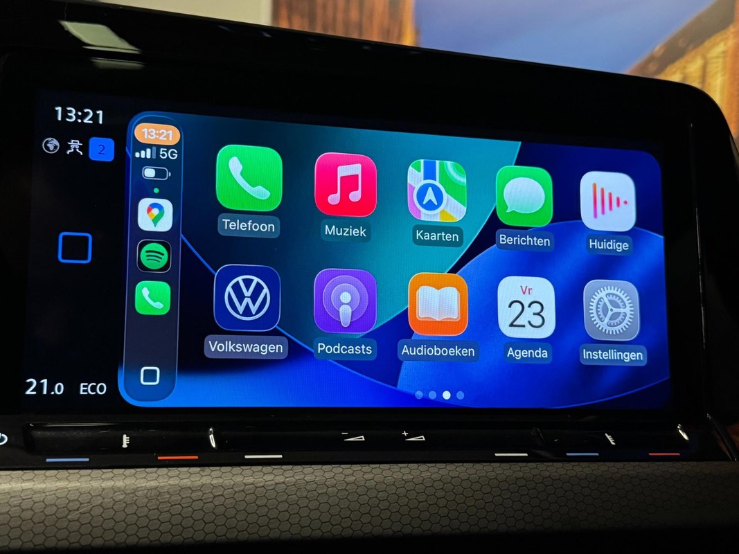 Ervaar de wonderen van de digitale mobiliteitswereld waarbij alles wat jij wenst op het digitale dashboard verschijnt. Zelfs een kleine aanrijding kan flinke kosten veroorzaken. Gelukkig laat de achteruitrijcamera precies zien wat er zich achter de auto bevindt en geeft een waarschuwingssignaal. Met adaptive cruise control houdt deze auto automatisch afstand tot jouw voorligger. Deze Volkswagen Golf is voorzien van remote services. Via je smartphone bedien je diverse functies ook op afstand en krijgt je informatie over de status van je auto. De bediening van het audiosysteem en het navigatiesysteem gebeurt met knoppen op het stuur en als je wilt zelfs met jouw stem. De audio is overigens voorzien van DAB-radio voor een altijd heldere ontvangst. En deze auto heeft ook achteropkomend verkeer waarschuwing, kruisend verkeer detectie, electronic climate control, sportstuur met schakelpaddels, draadloos opladen en regensensor als standaard uitrusting.