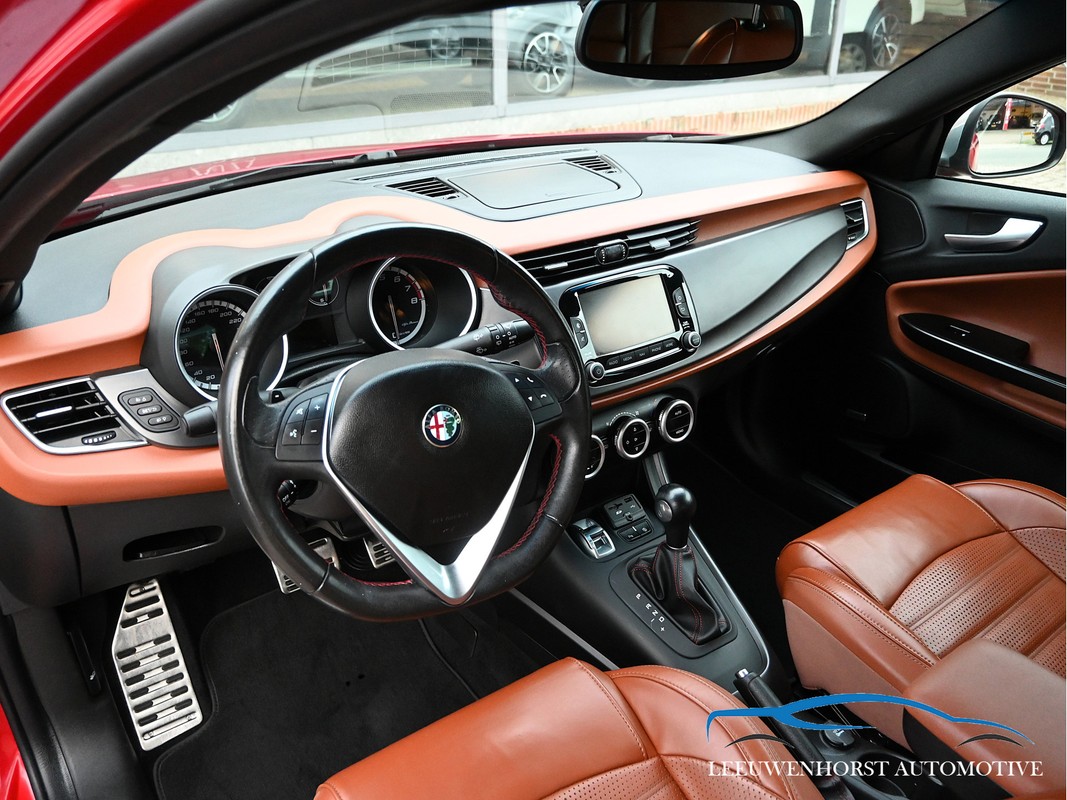 Zeer nette en vooral goed rijdende Giulietta 1.4 Exclusive. Deze Alfarosso Exlusive is voorzien van cognac-kleurige lederen bekleding, stoelverwarming, navigatie, climate control, cruise control etc. etc. in de optielijst treft u alle bijzonderheden over deze perfect onderhouden Giulietta.