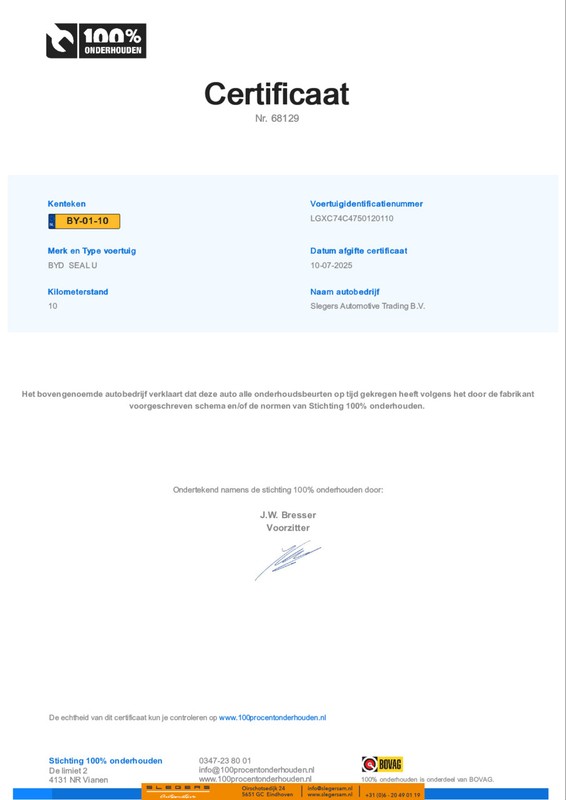 Met zijn ruimte en zijn prestaties is dit de auto die bij jou past. Hybride rijden is de ideale middenweg. Deze Byd SEAL U biedt die mogelijkheid. Goedkoper rijden, schoner rijden en zo nodig over op benzine. De ideale combi! In de winter wordt het echt genieten met de stoelverwarming. Een praktische extra is de elektrisch bedienbare achterklep die opent en sluit met een druk op de knop. Het glazen panoramadak laat meer licht binnen in het interieur en zorgt voor een magnifiek uitzicht naar buiten. De uitmonstering van deze auto wordt gecompleteerd door onder meer 19 inch lichtmetalen velgen, LED koplampen, warmtewerend glas, in delen neerklapbare achterbank, LED-achterlichten en verstelbare lendensteunen.