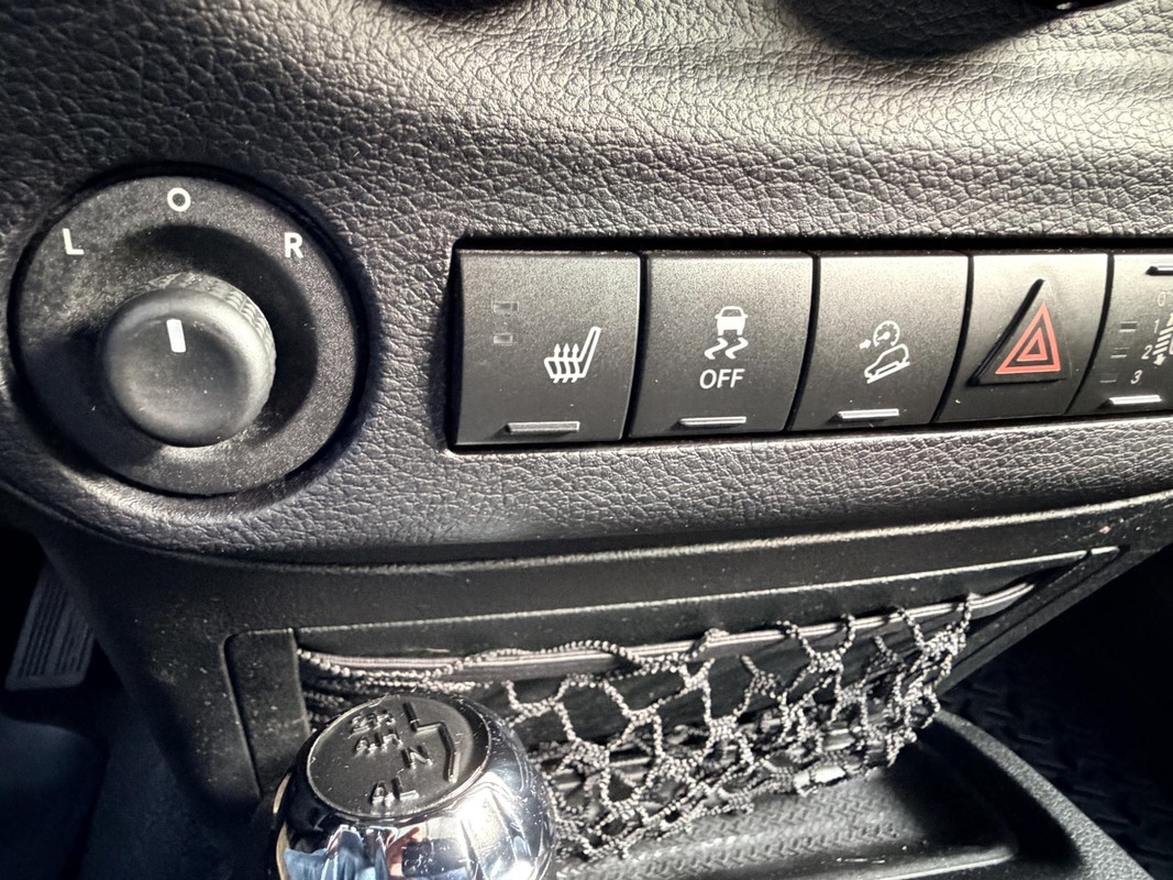 - Zwarte lederen stoelbekleding met inlegpanelen in het dashboard