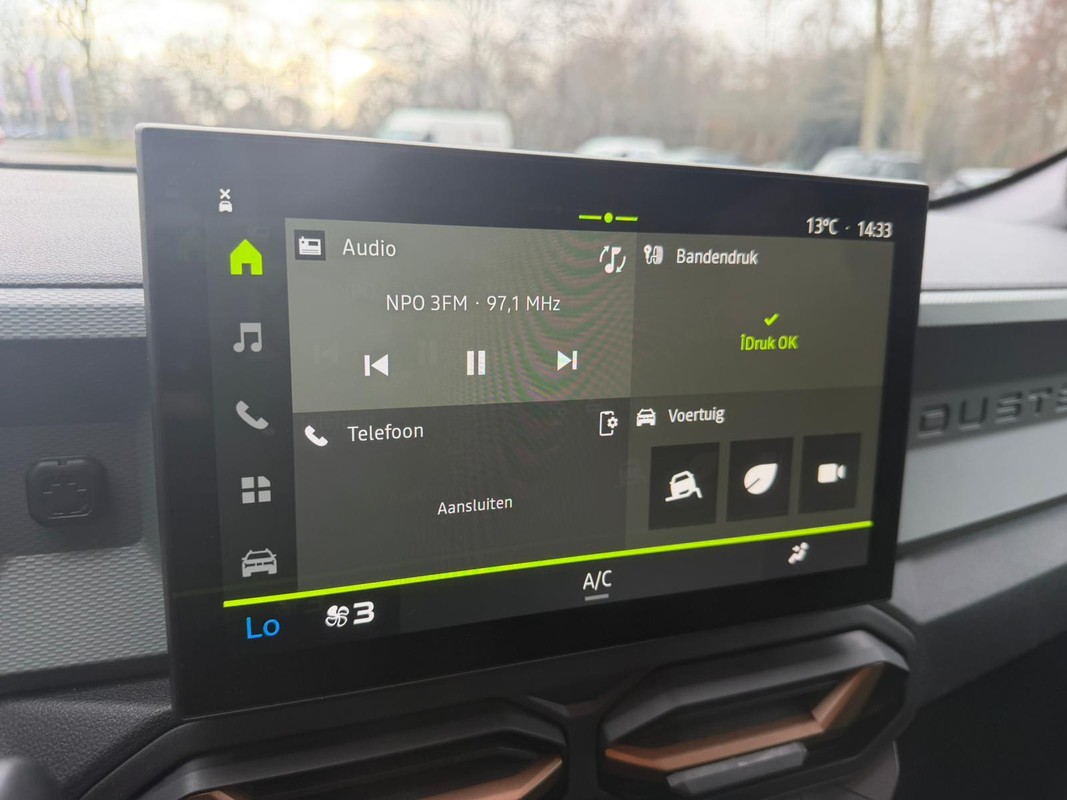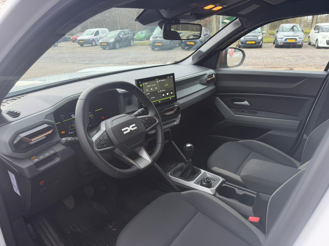 Voor een goed en duidelijk overzicht onderweg is het digitale dashboard uitermate slim ingedeeld. Dankzij de 360 graden camera op de auto, wordt manoeuvreren in smalle straatjes ineens veel eenvoudiger. Het navigatiesysteem is uw vertrouwde gids, waarheen de reis ook gaat. Natuurlijk is er ook electronic climate control aanwezig. Ook lekker handig is de audiobediening op het stuur. U bent in deze Dacia ook voorzien van draadloos opladen, DAB ontvangst, regensensor, cruise control, keyless entry en boordcomputer.