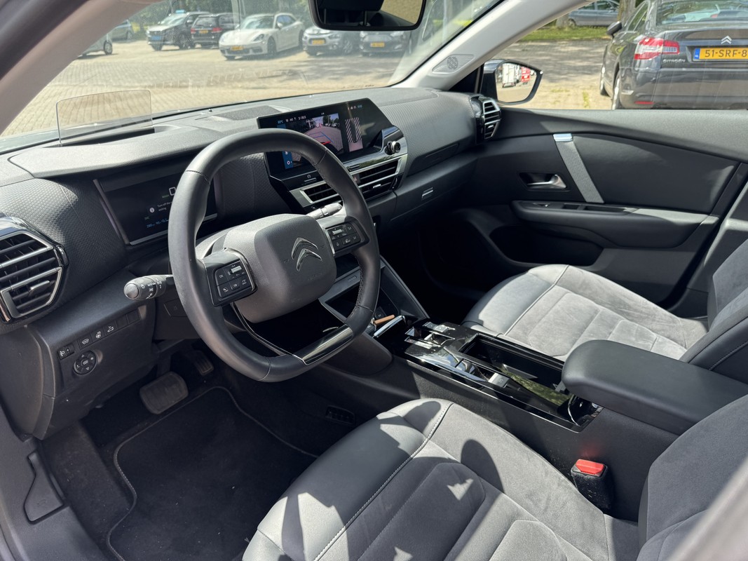 Het digitale dashboard is een perfecte bijrijder. Alles benodigde informatie is permanent zichtbaar of opvraagbaar. Met behulp van de achteruitrijcamera kunt u zo strak inparkeren als u maar wilt! Adaptive cruise control houdt de ingestelde snelheid vast en houdt automatisch afstand tot uw voorligger. Wat is de onderhoudsstatus van deze auto? U checkt het snel, simpel en overal via uw smartphone. In deze Ë-C4 X vindt u niet alleen schakelaars op het stuur om het navigatiesysteem te bedienen en het audiosysteem met DAB-ontvangst, maar er is ook spraakbediening. De Citroën is standaard voorzien van: achteropkomend verkeer waarschuwing, automatische airconditioning, regensensor, keyless entry, automatisch dimmende binnenspiegel en lederen stuur.