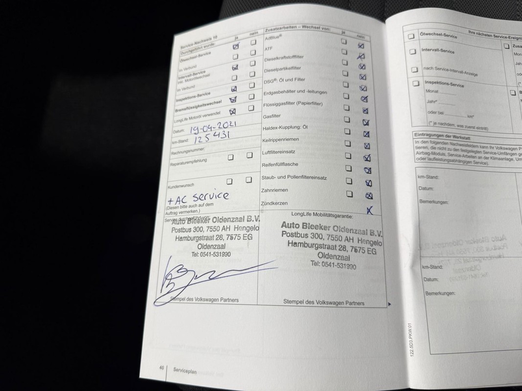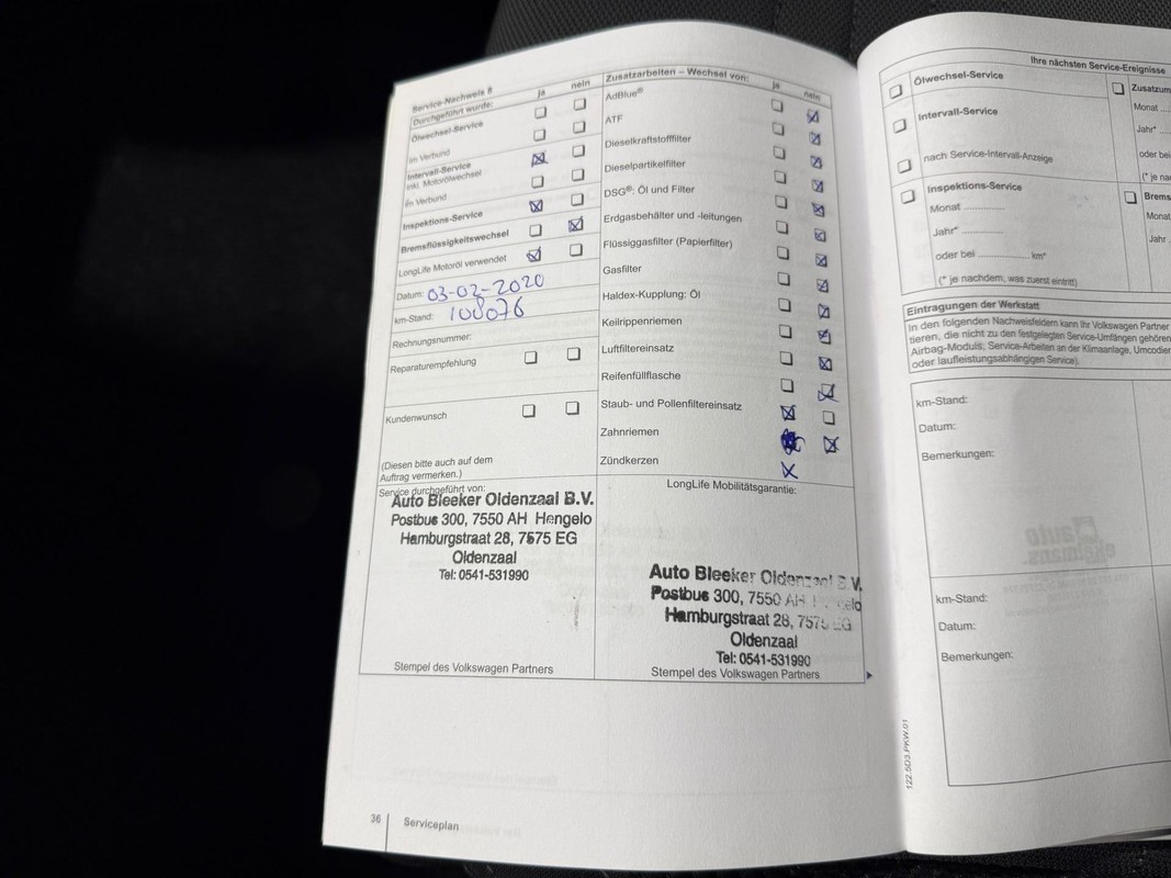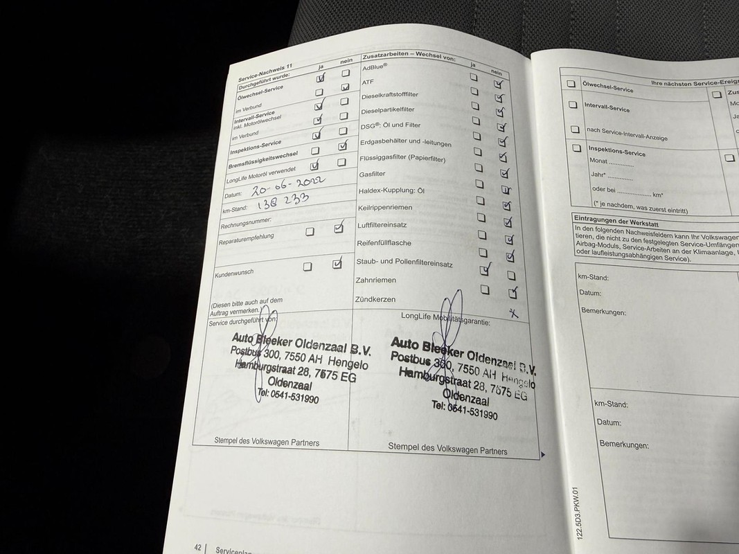 Onderhoudsboekjes: Aanwezig