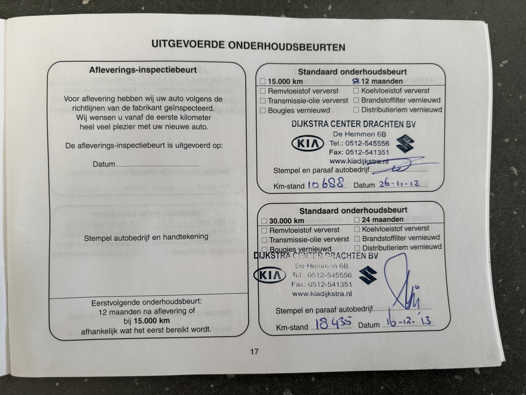 Onderhoudsboekjes: Aanwezig