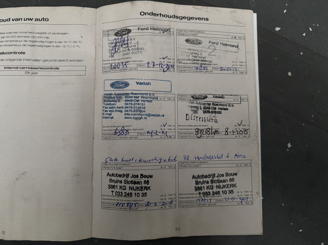 Onderhoudsboekjes: Aanwezig
