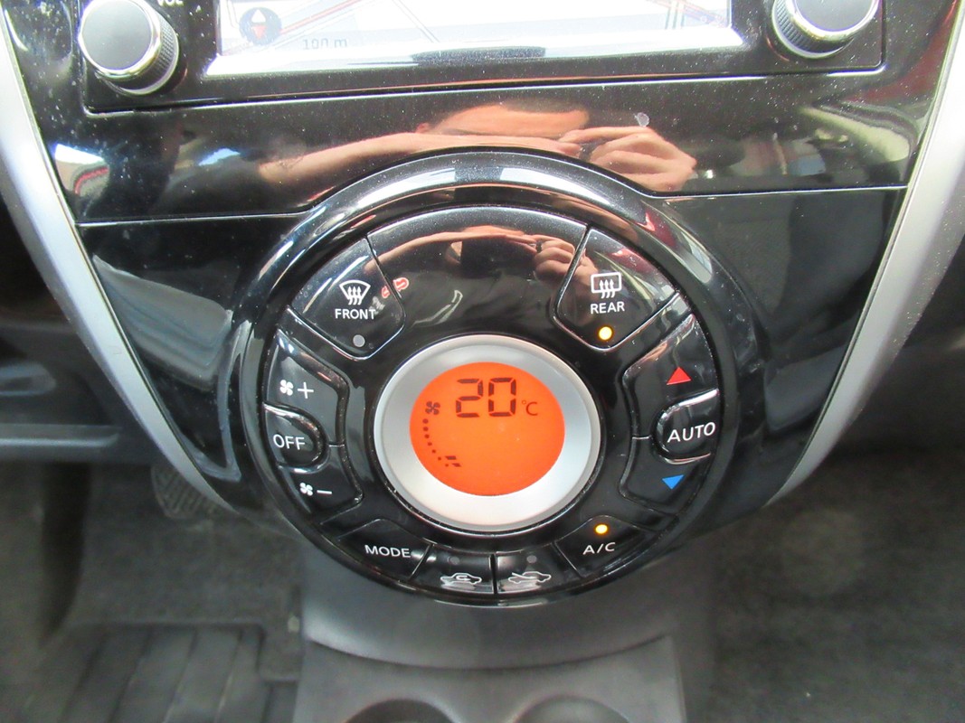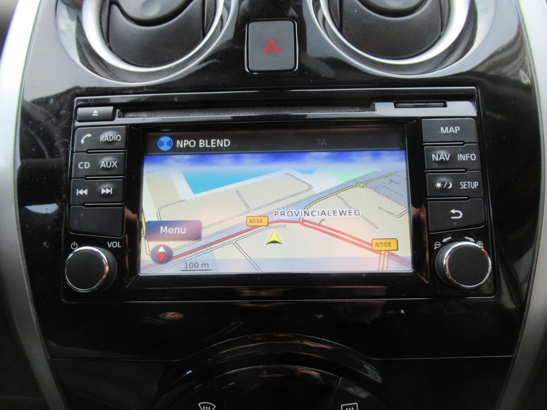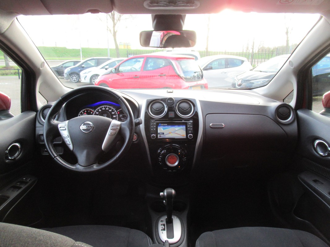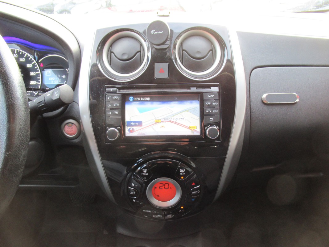 Het comfort wordt verhoogd door de aanwezige automatische airconditioning. Het drukke verkeer eist onderweg al uw aandacht op. Daarom is het goed dat deze Nissan is voorzien van diverse systemen die u assisteren tijdens de rit. Een automatisch inschakelbare verlichting neemt het waar als het donker wordt of gaat schemeren, en schakelt dan automatisch de verlichting in. Op dezelfde manier "ziet" de regensensor de eerste spatjes regen en schakelt dan de ruitenwissers in, en als het harder gaat regenen zet hij de ruitenwissers ook in een snellere stand. Natuurlijk is er ook cruise control aan boord, waarmee u meer ontspannen en zuiniger rijdt. Deze Nissan Note is voorzien van keyless entry, waardoor de portieren en achterklep vanzelf open gaan als u in de nabijheid komt. U bent in deze Nissan ook voorzien van navigatiesysteem, buitentemperatuurmeter, isofix-aansluiting, centrale deurvergrendeling met afstandsbediening en toerenteller.